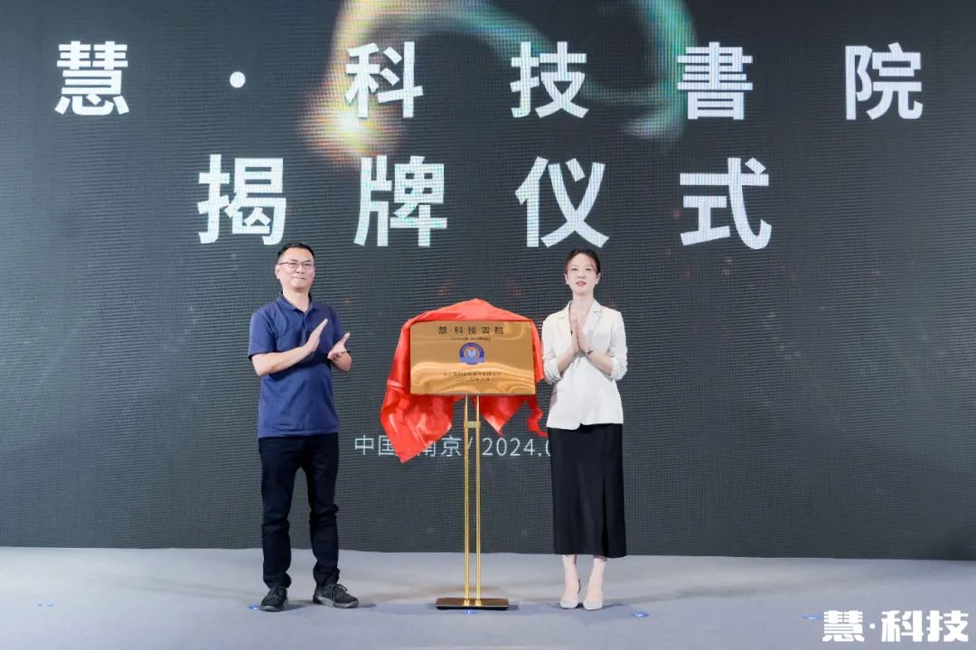 慧科技董事长金锺与慧·科技書院执行院长龙天宇共同为慧·科技書院揭牌,旨在通过向行业提供技术、产品、营销、安装、运维全链可复制的培训赋能,助力行业发展。